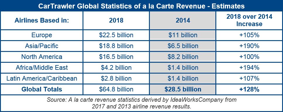 European Airlines Lead 2018 a la Carte Revenue Estimate at $22.5 Billion with Asian Carriers 2nd at $18.8 Billion – CarTrawler